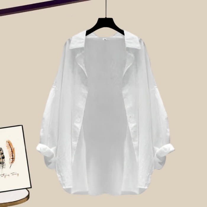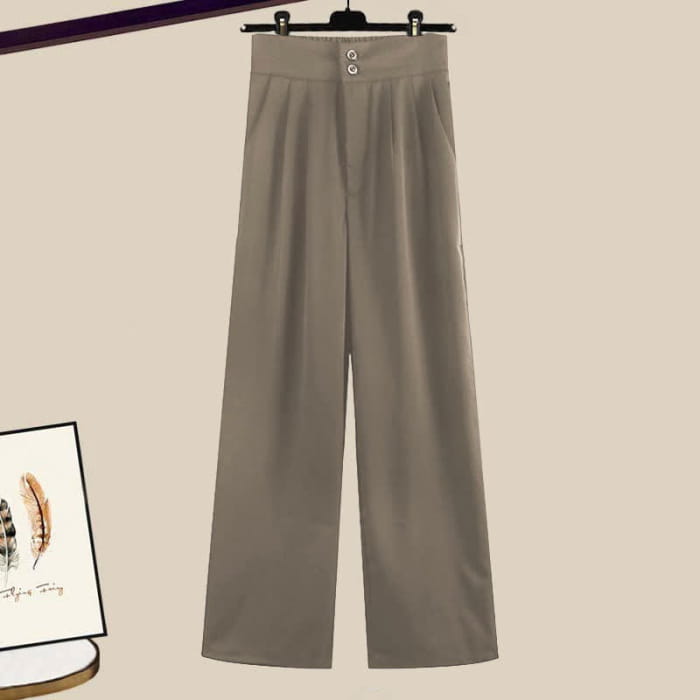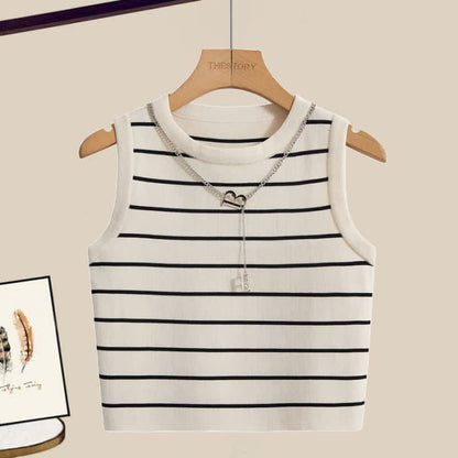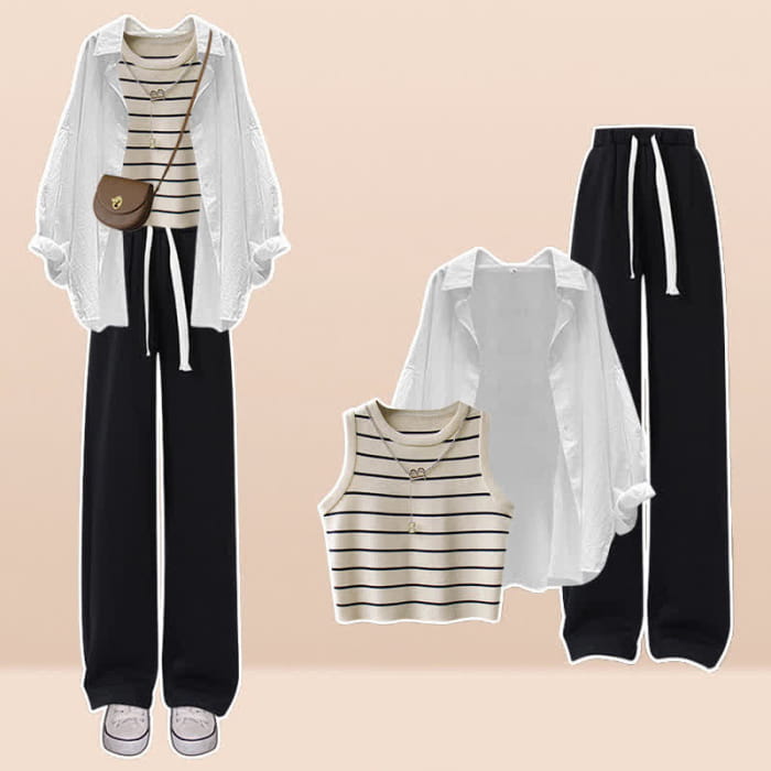 Chic Stripe Cami Top Long Sleeve Shirt High Waist Casual Pants