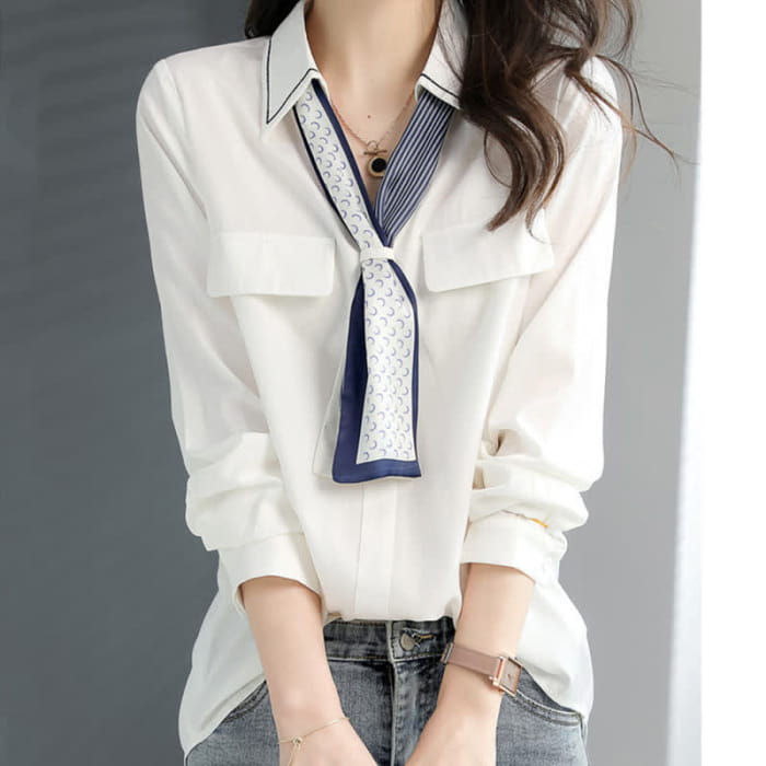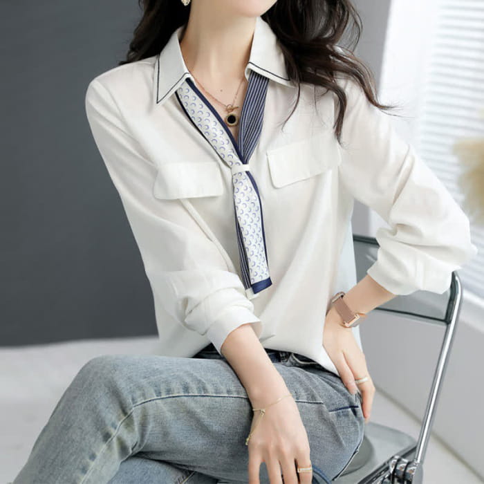 Elevate your style with our Chic V-neck with Tie Shirt. Crafted with an elegant v-neckline and tie details, this shirt exudes sophistication and adds a touch of glamour to any outfit. Perfect for any occasion, our shirt is a must-have in your wardrobe.