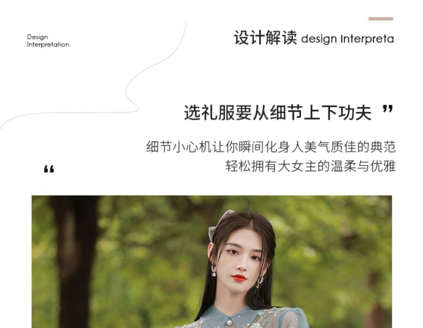 Short-Sleeve Collar Sequin A-Line Evening Gown