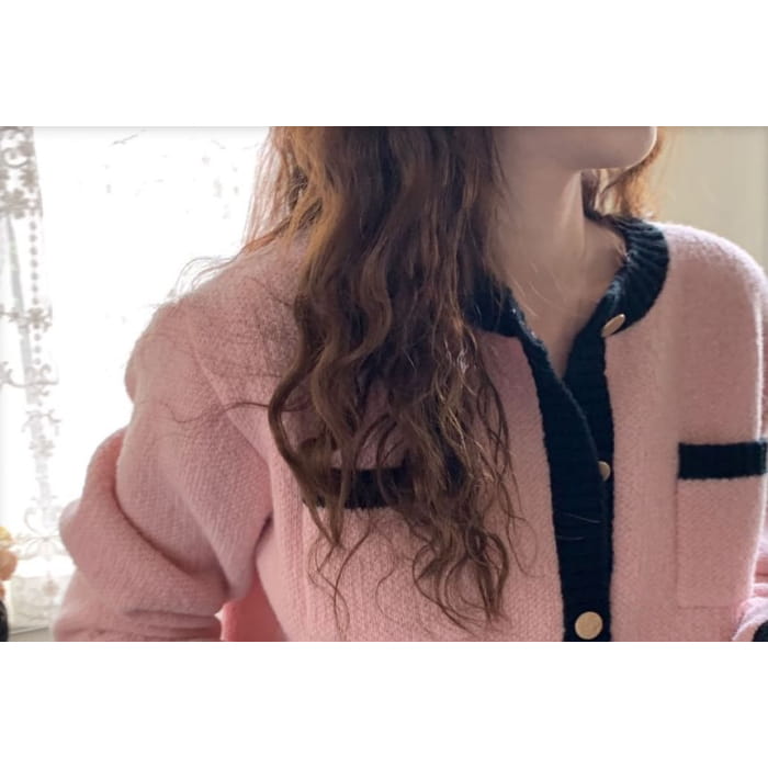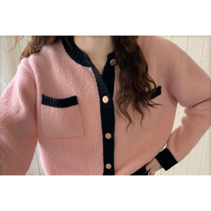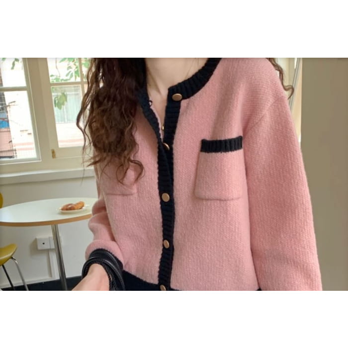 Contrasted Crew-Neck Cardigan