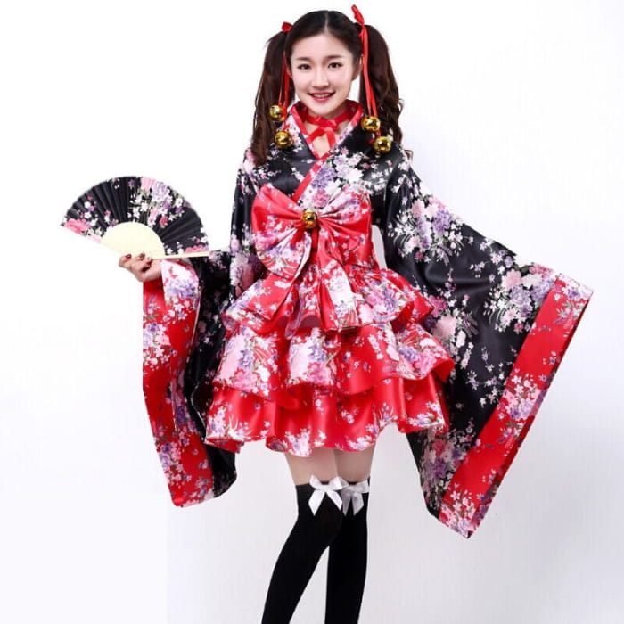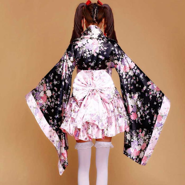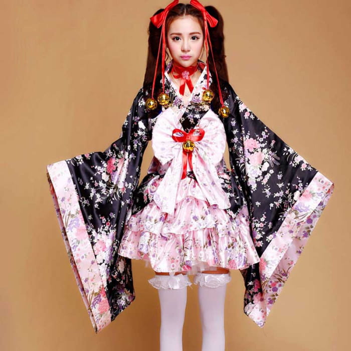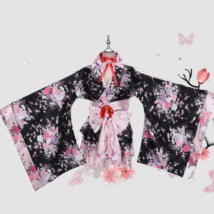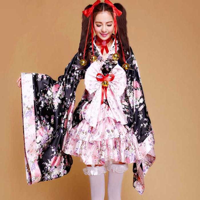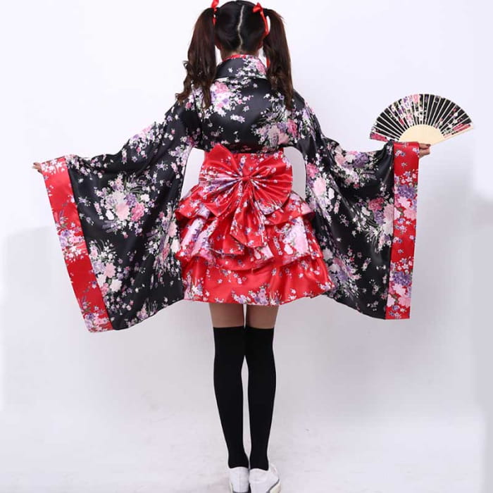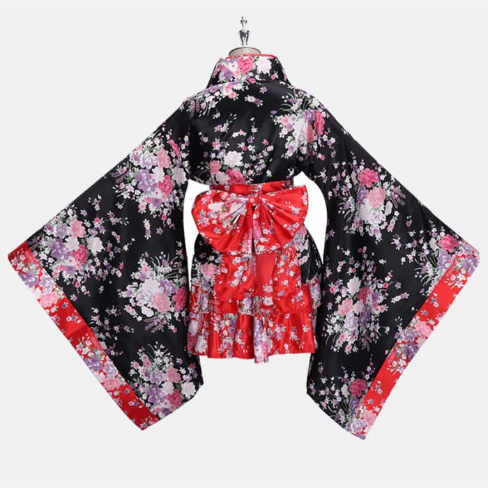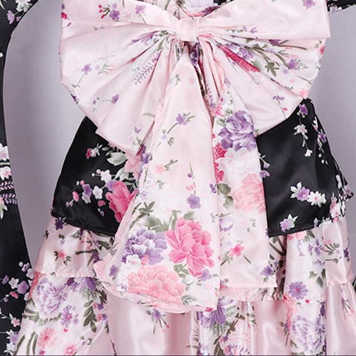 Cosplay Flower Print Bowknot Kimono Costume