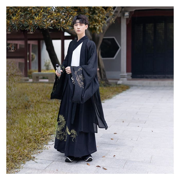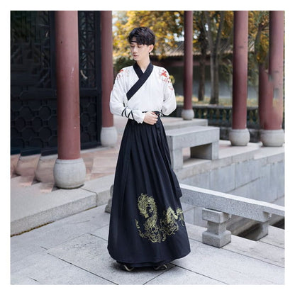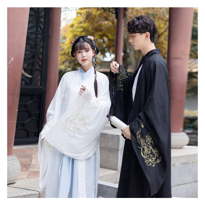 Couple Matching Embroidered Hanfu Jacket / Blouse / High Waist Maxi