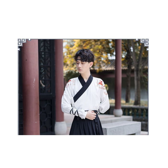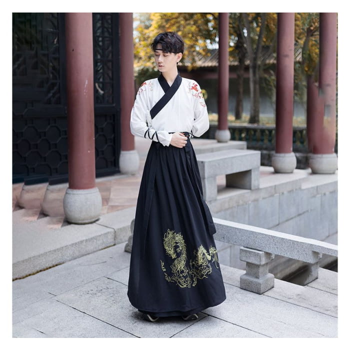 Couple Matching Embroidered Hanfu Jacket / Blouse / High Waist Maxi A