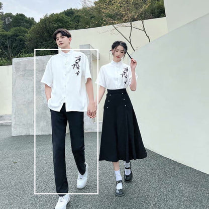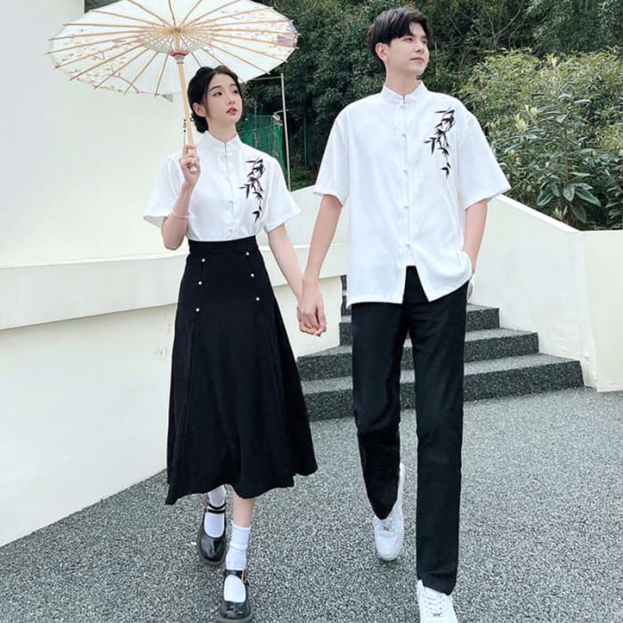 Couple Vintage Leaves Print T-Shirt Skirt Pants