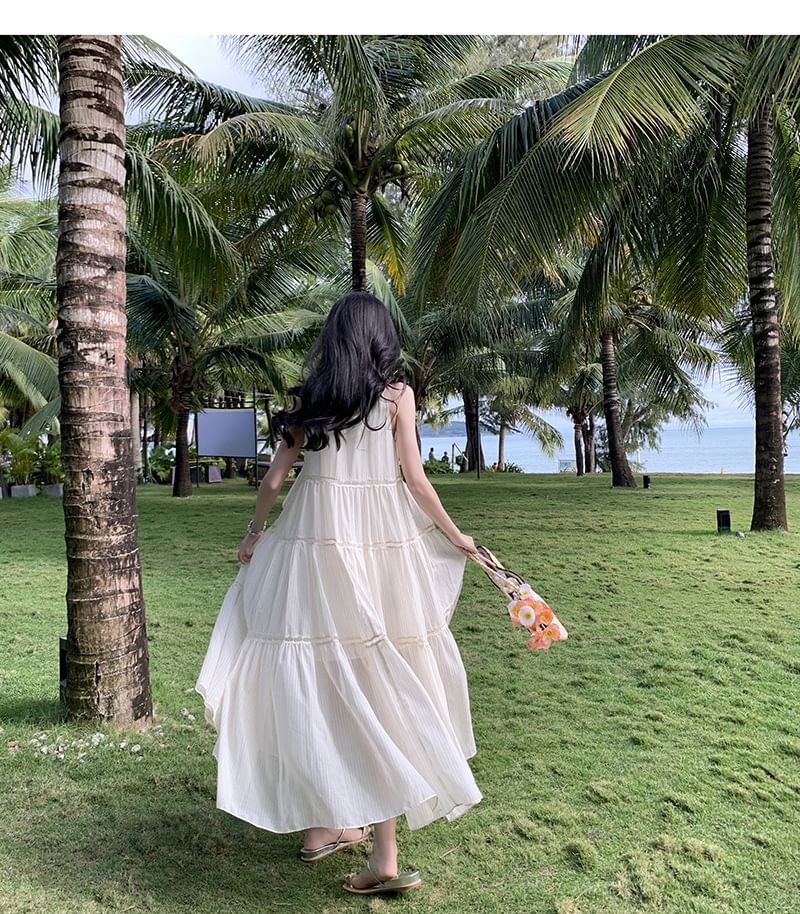 Sleeveless Crewneck Plain Midi A-Line Dress