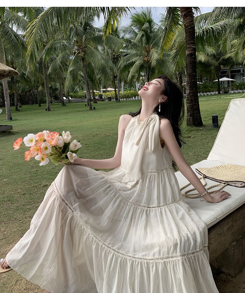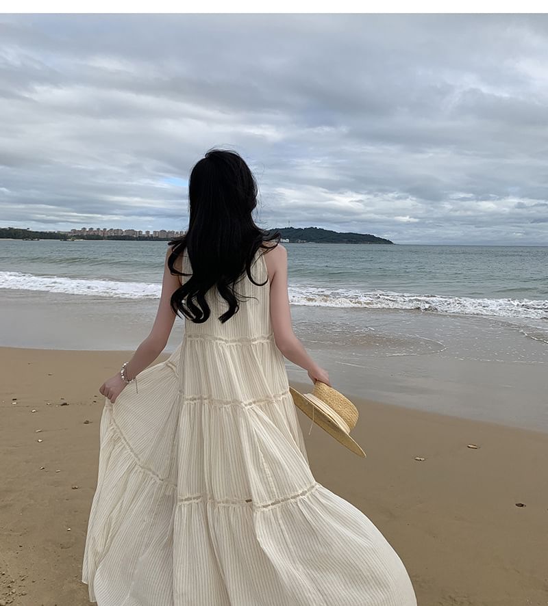 Crewneck Sleeveless Midi Dress A-Line Plain