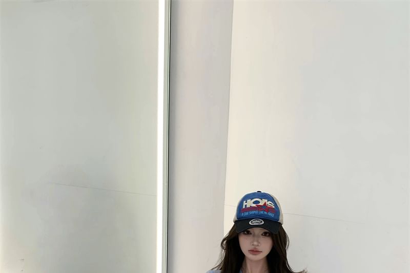 Crop Long-Sleeve Top Round Panel Neck Mesh Dotted