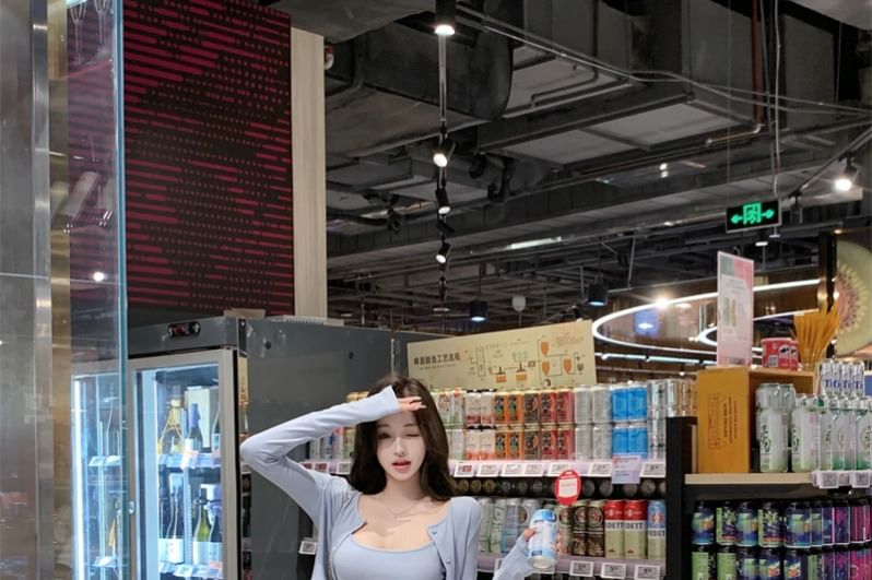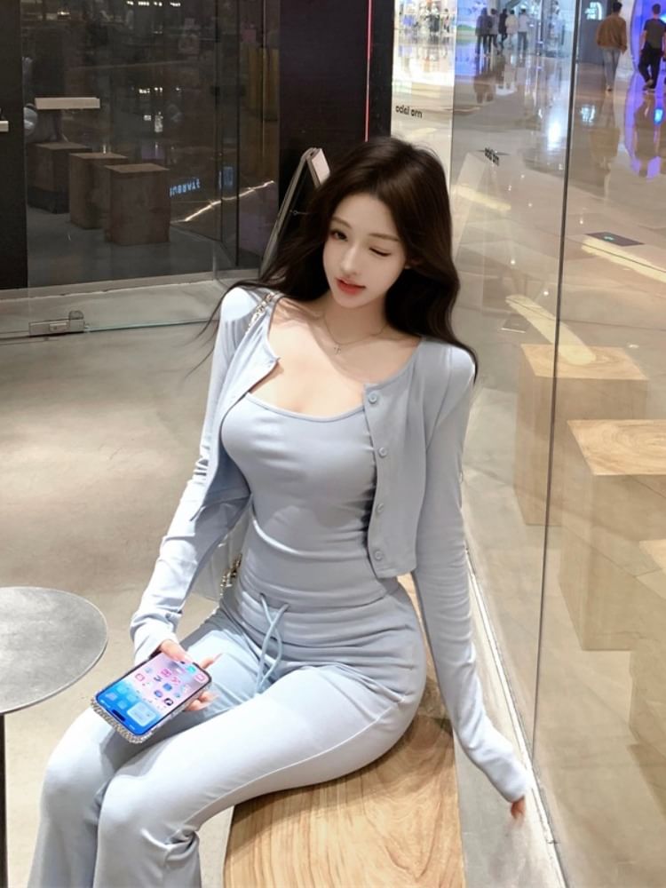 Crop Top Waist Drawstring Crew Camisole Scoop Cardigan Button-Up Plain Pants Flared Neck /