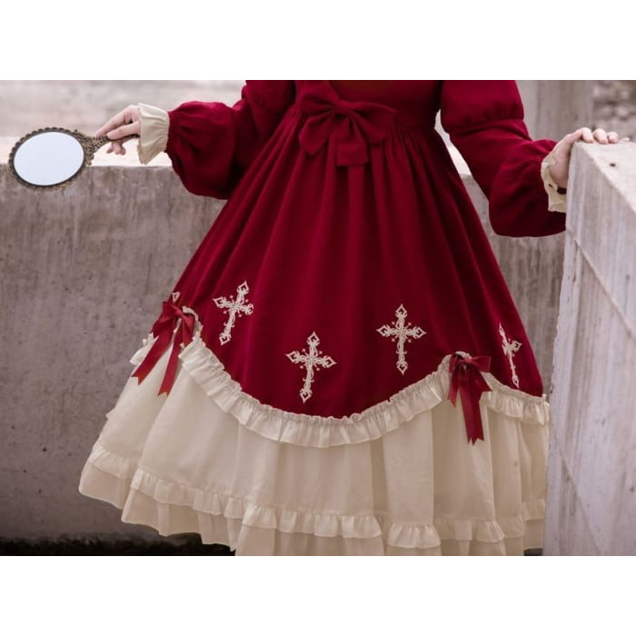 Cross Embroidered Long-Sleeve Lolita Dress