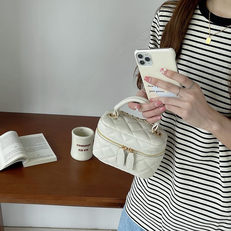 Crossbody Faux Quilted Zip Plain Leather Bag