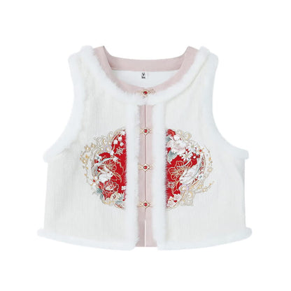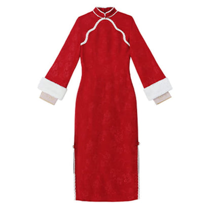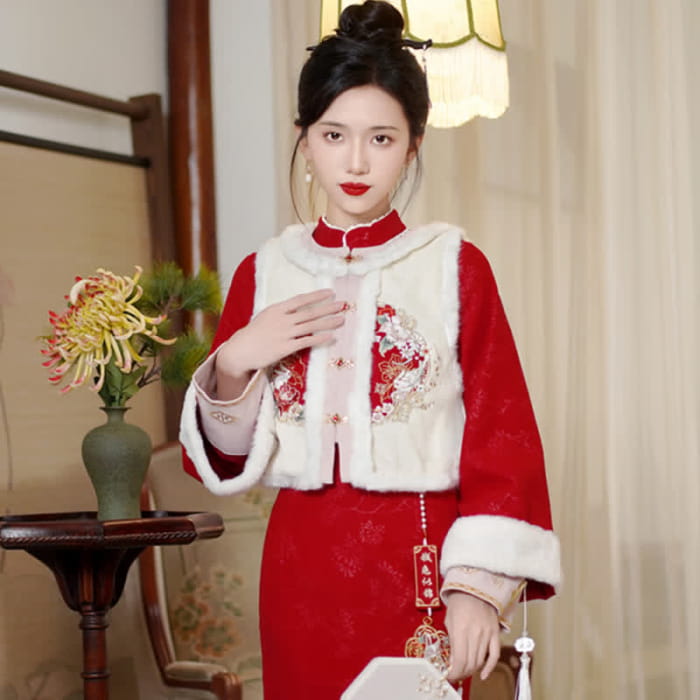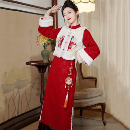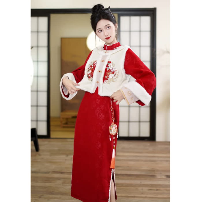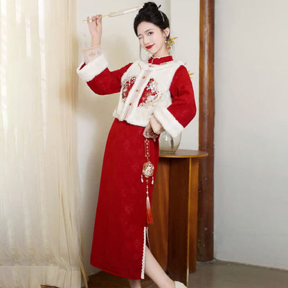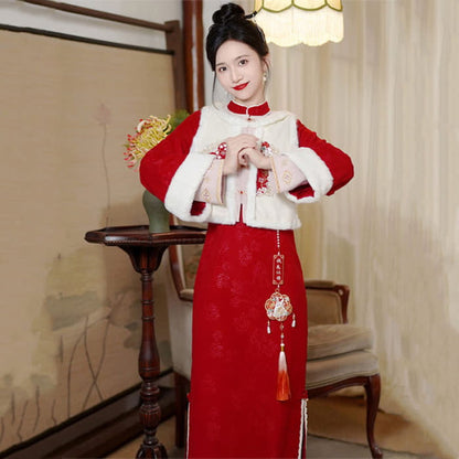 Cute Rabbit Cardigan Vest Split Cheongsam Dress