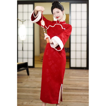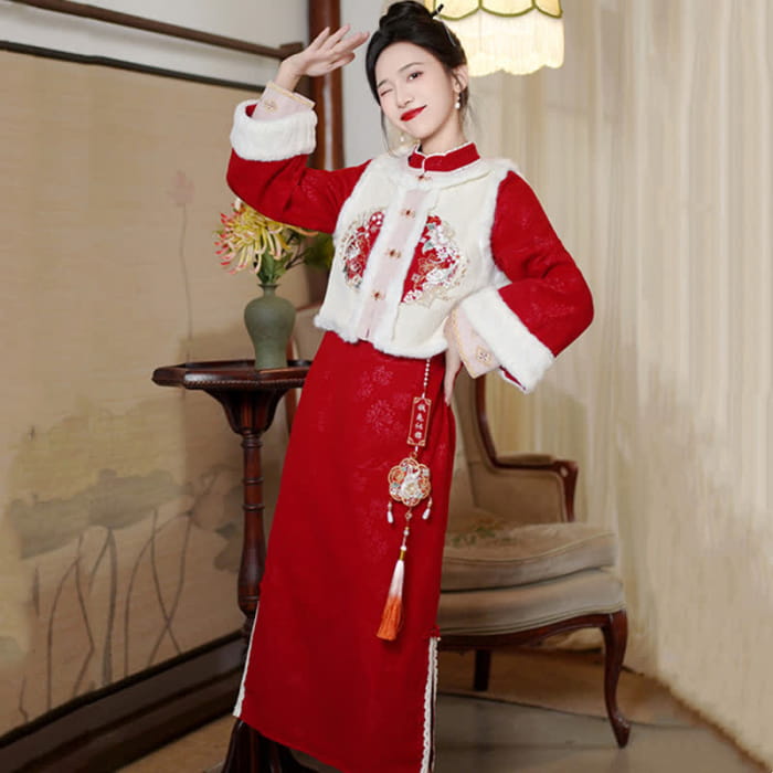 Introducing our elegant Cute Rabbit Cardigan Vest Split Cheongsam Dress. This charming dress features a unique split design, combining the traditional Chinese Cheongsam with a modern cardigan vest. The adorable rabbit print adds a touch of cuteness to this sophisticated dress. Perfect for any occasion, this dress is sure to turn heads.