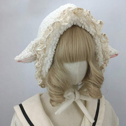 Cute Sheep Ears Lace Lolita Hat Warm