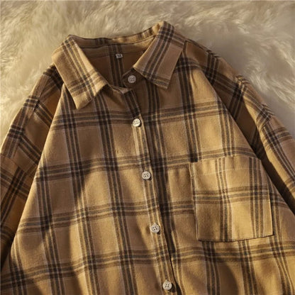Elevate your style with our elegant Dark Retro Plaid Shirt. This classic piece features a stunning plaid design in dark hues, perfect for showcasing your sophisticated taste. With its timeless style and comfortable fit, this shirt is a must-have for any wardrobe.