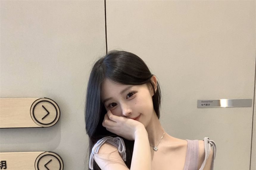 Deep Plain Scoop Set: Neck Top Shoulder + Plunge Camisole Tie Tank