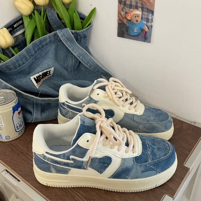 Elevate your style with our Denim Heart Aesthetic Sneakers. Crafted with a denim exterior and a heart design, these elegant sneakers will add a touch of sophistication to any outfit. Comfortable and fashionable, they're the perfect addition to your wardrobe.
