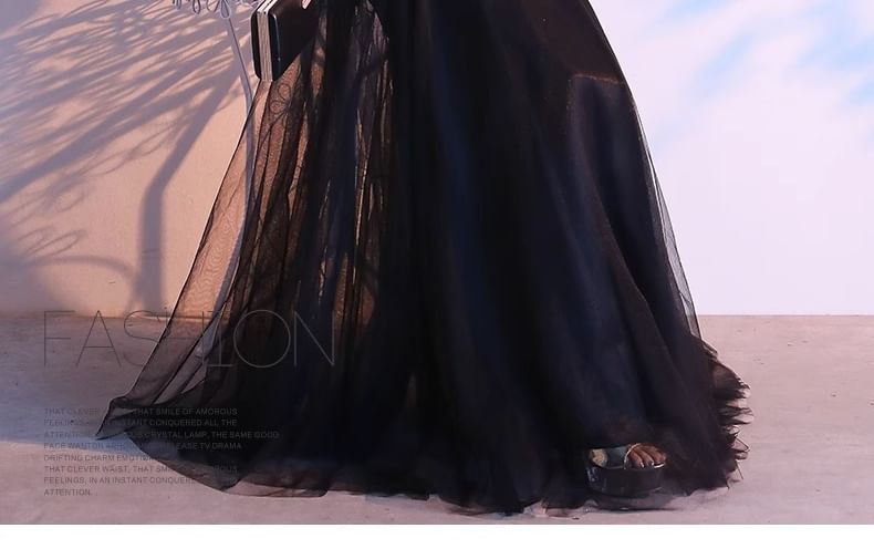 Short-Sleeve Lace Panel A-Line Evening Gown (Various Designs)
