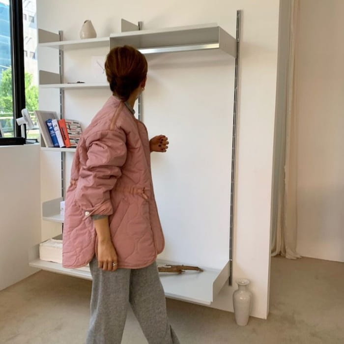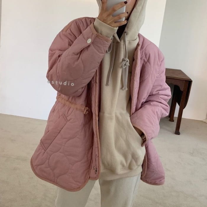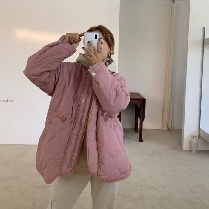 Drawstring Waist Round Neck Padded Jacket