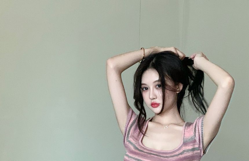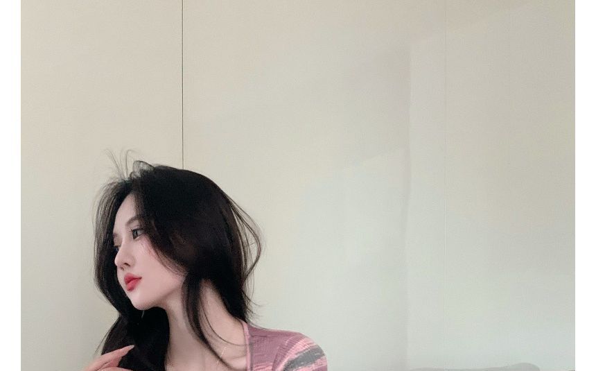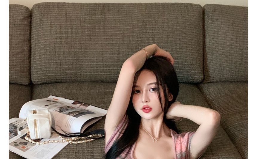 Dress Mini Short-Sleeve Square-Neck Striped Slim-Fit
