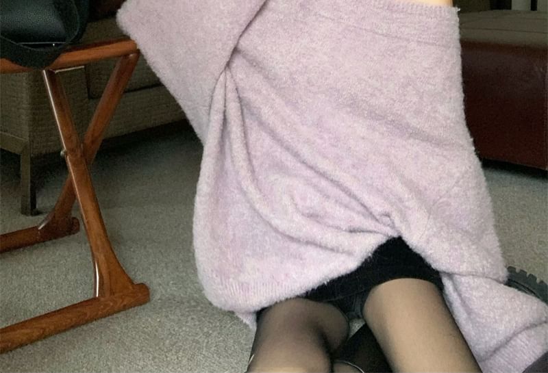 Drop Shoulder Off Shoulder Plain Oversized Sweater / Belt