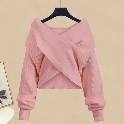 Elegant Cross Knit Sweater Turtleneck Shirt Slip Dress