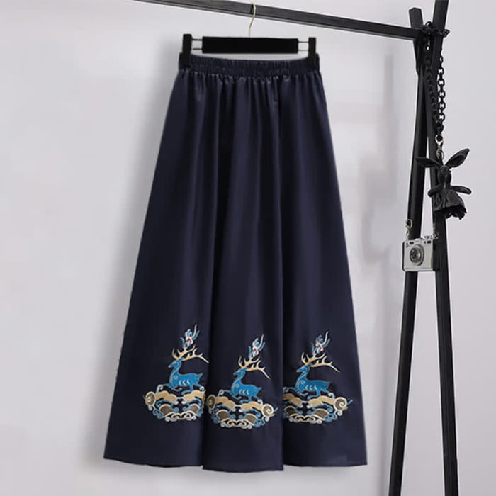 Elegant Deer Embroidery Buckle Shirt Skirt