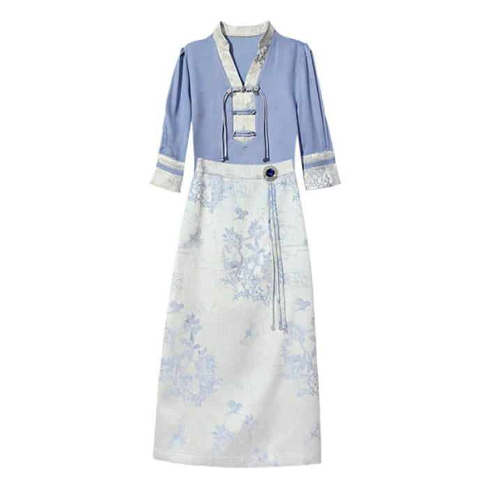 Elegant Floral Shirt Embroidery Skirt Two Pieces Set