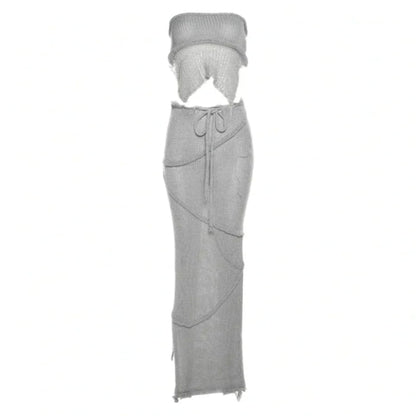 Elegant Knit Crochet Maxi Skirt