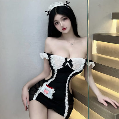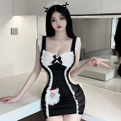 Elegant Maid Hollow Out Lace Lingerie Dress