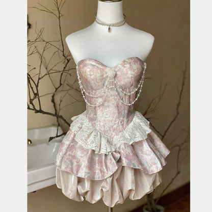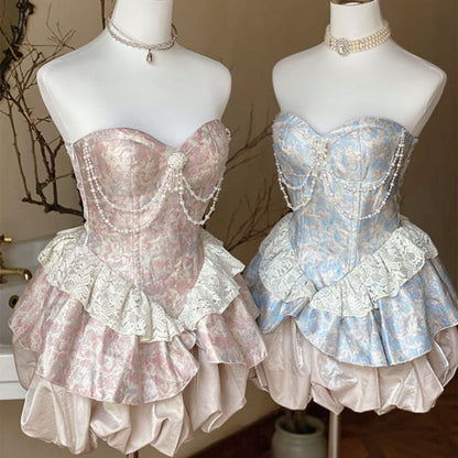 Elegant Princess Off The Shoulder Lace Pearl Deocr Mini Dress