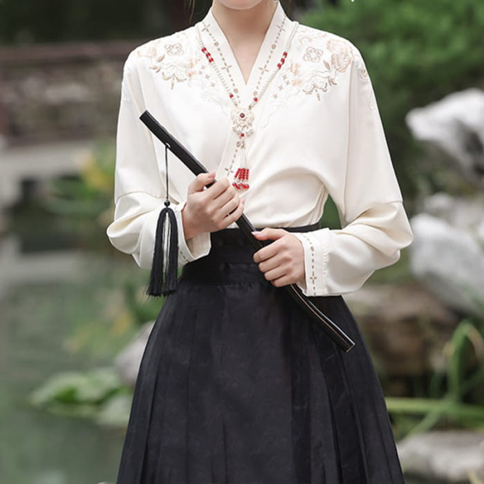 Indulge in timeless elegance with our Elegant V-neck Long Sleeve Shirt Vintage Print Pleated Skirt. The V-neck and long sleeves add a sophisticated touch, while the vintage print and pleated skirt exude classic charm. Elevate your wardrobe with this elegant ensemble.