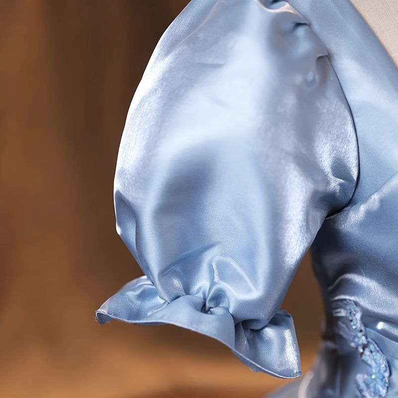 Short-Sleeve Square Neck Plain Embroidered Evening Ball Gown