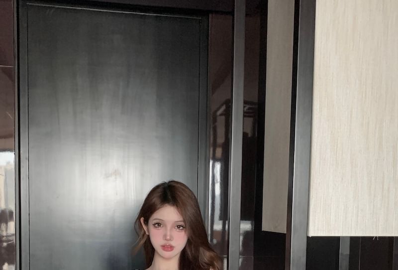 Embroidered Shorts V-Neck A-Line Blouse / Maxi Rise Set Plain Camisole High Top Flower Skirt Puff-Sleeve