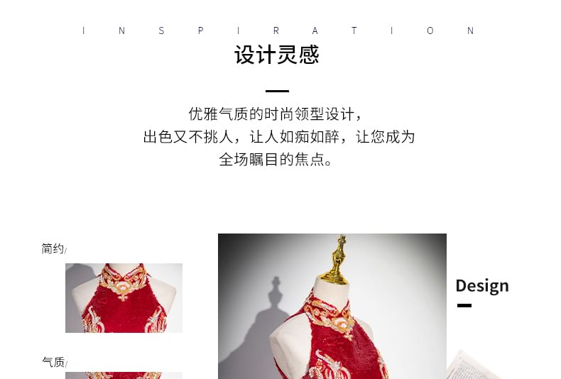 Sleeveless Stand Collar Patterned Embroidered Sequin Cutout Back A-Line Evening Gown