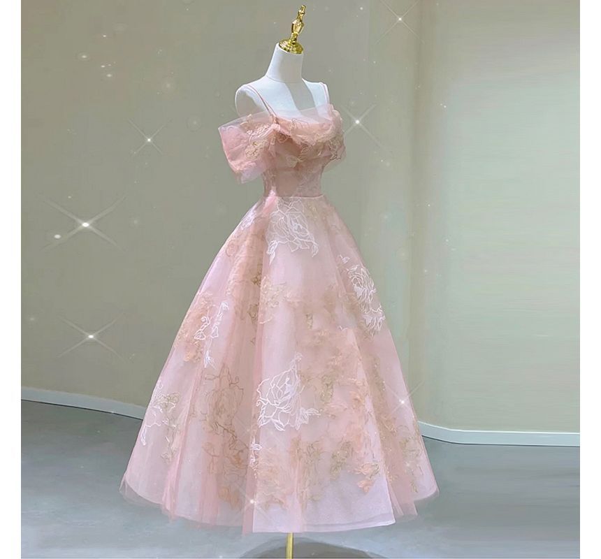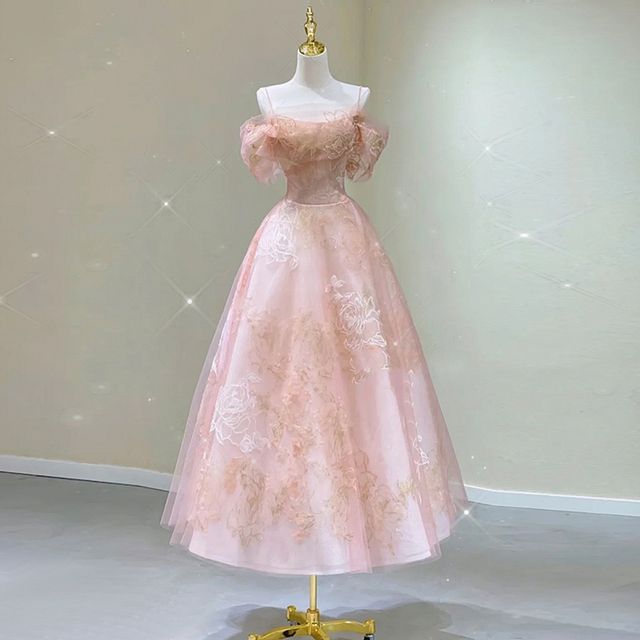 Evening Gown A-Line Floral Print Cold-Shoulder