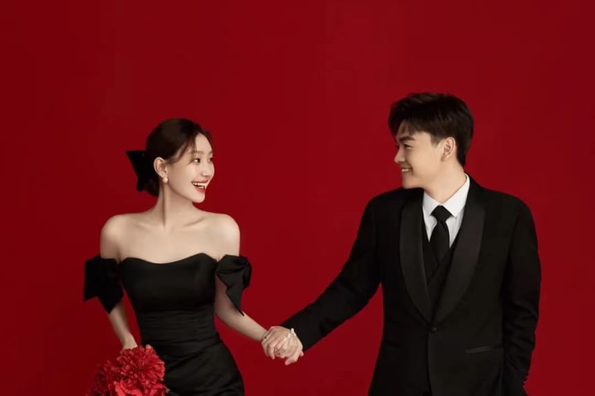 Off-Shoulder Puff-Sleeve Bow A-Line Evening Gown