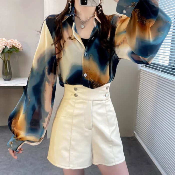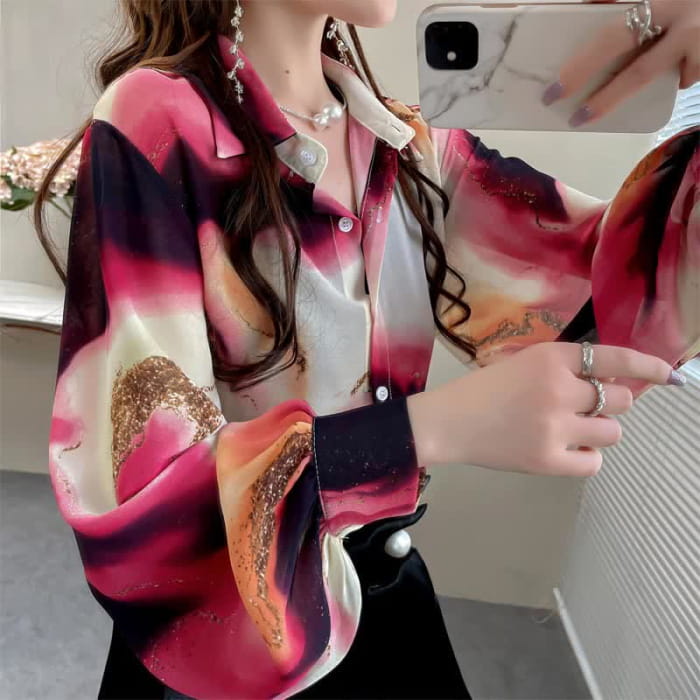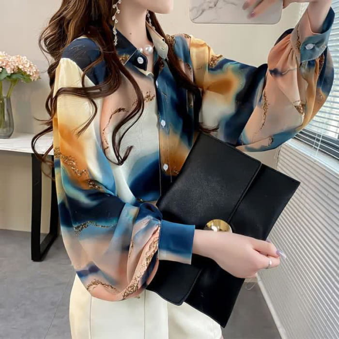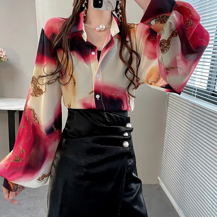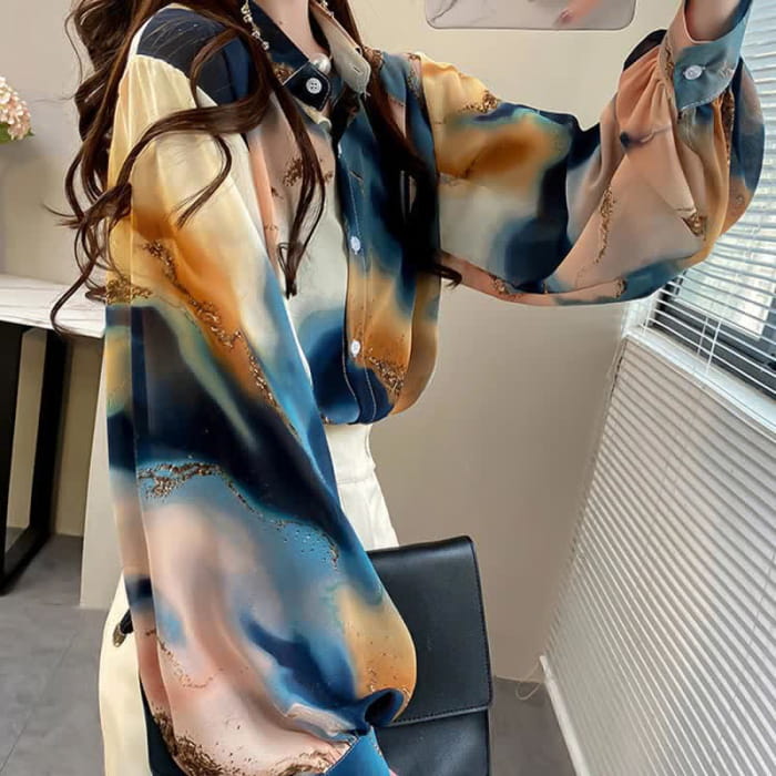 Elevate your wardrobe with our Fashion Colorblock Tie-dye Print Puff Sleeve Shirt. Featuring a unique tie-dye print and stylish puff sleeves, this shirt is the epitome of elegance. Elevate your style with this statement piece and stand out from the crowd.