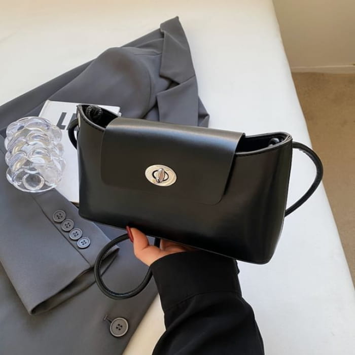 Faux Leather Plain Crossbody Bag