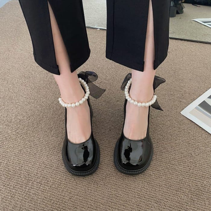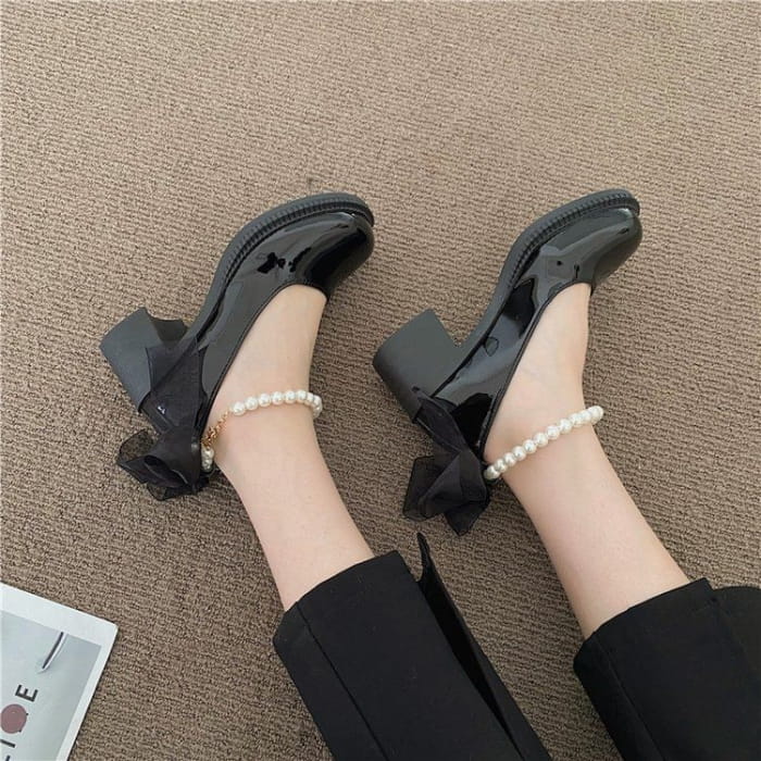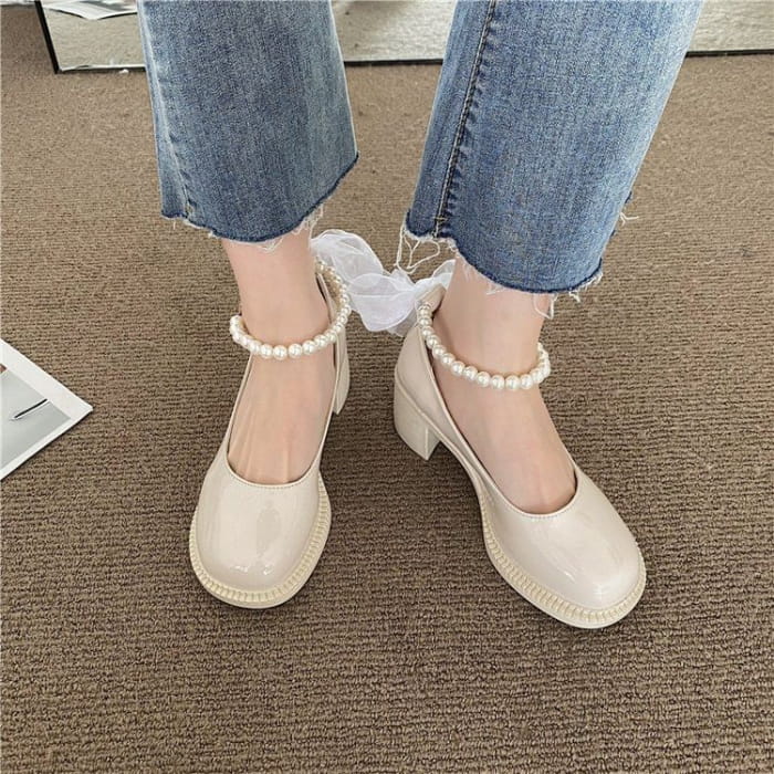 Faux Pearl Ankle-Strap Chunky-Heel Pumps