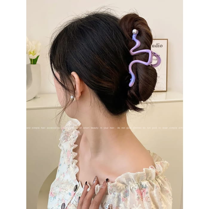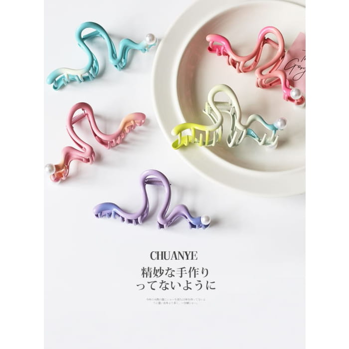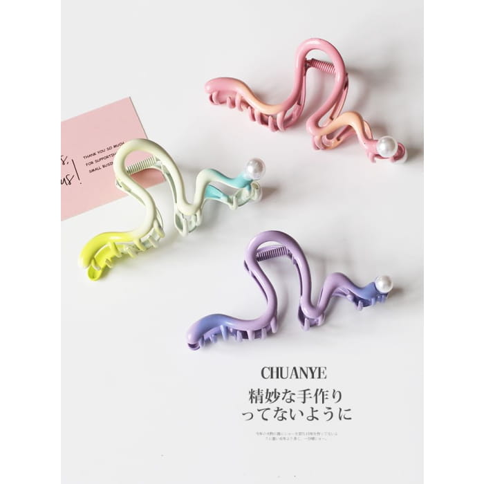 Faux Pearl Wavy Alloy Hair Clamp