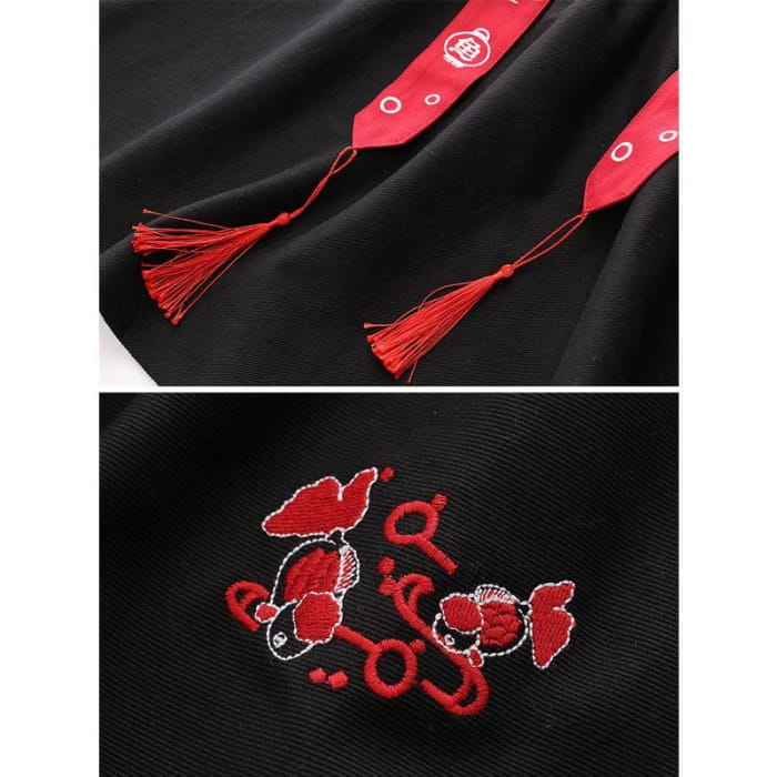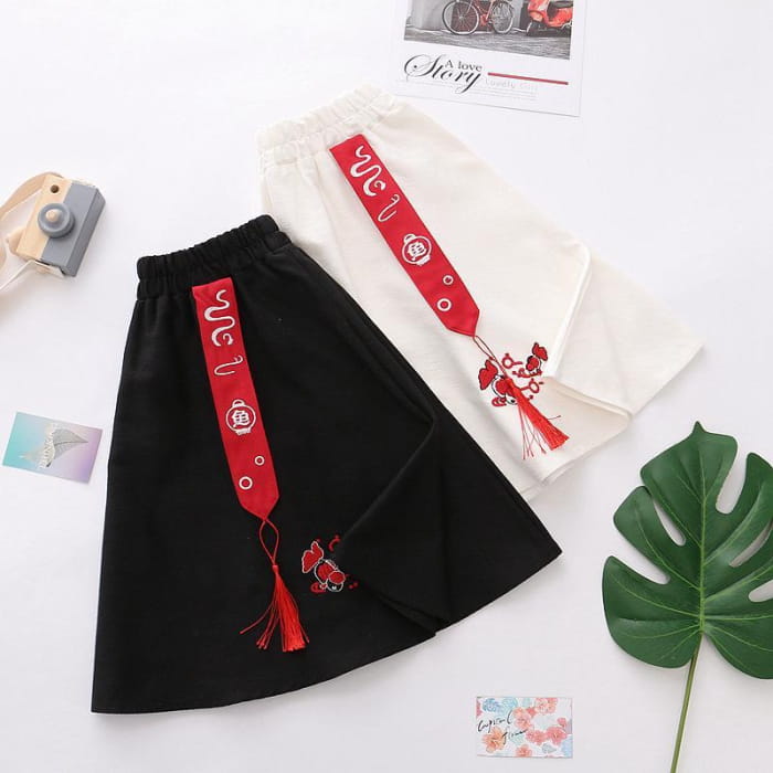 Elevate your style with our elegant Fish Embroidery Tassels A-line Skirt. Featuring beautiful fish embroidery and playful tassels, this skirt is sure to turn heads. Its flattering A-line cut adds a touch of sophistication to any outfit. Perfect for a day at the office or a night out, this skirt is a must-have in your wardrobe.