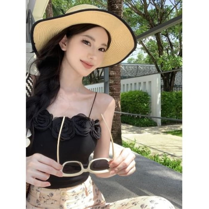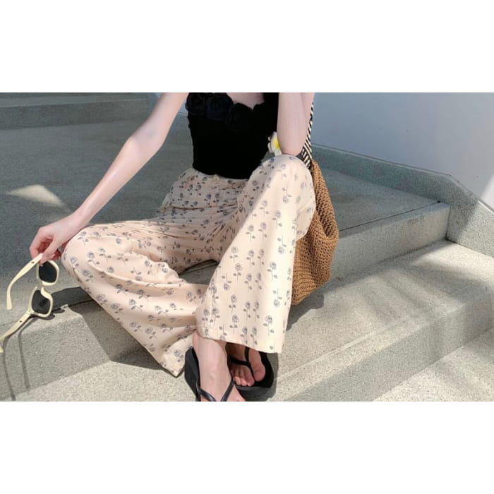 Floral Camisole Top / High Waist Floral Print Wide Leg Pants