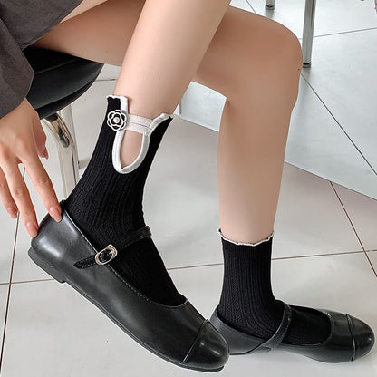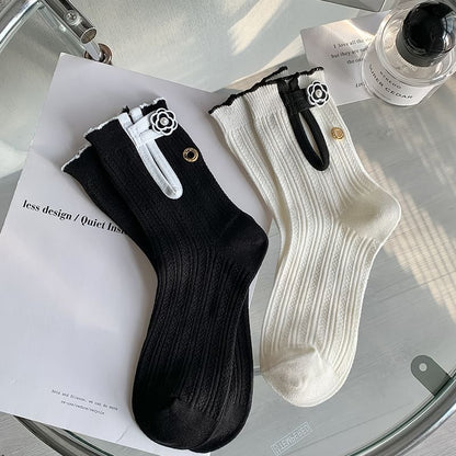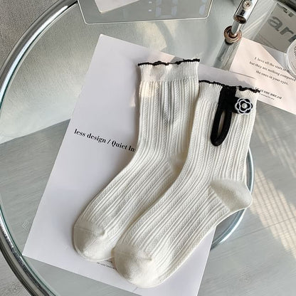 Floral Contrast Trim Ribbed Socks