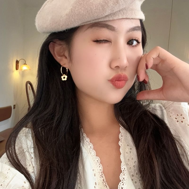 Sterling Silver Floral Hoop Earring
