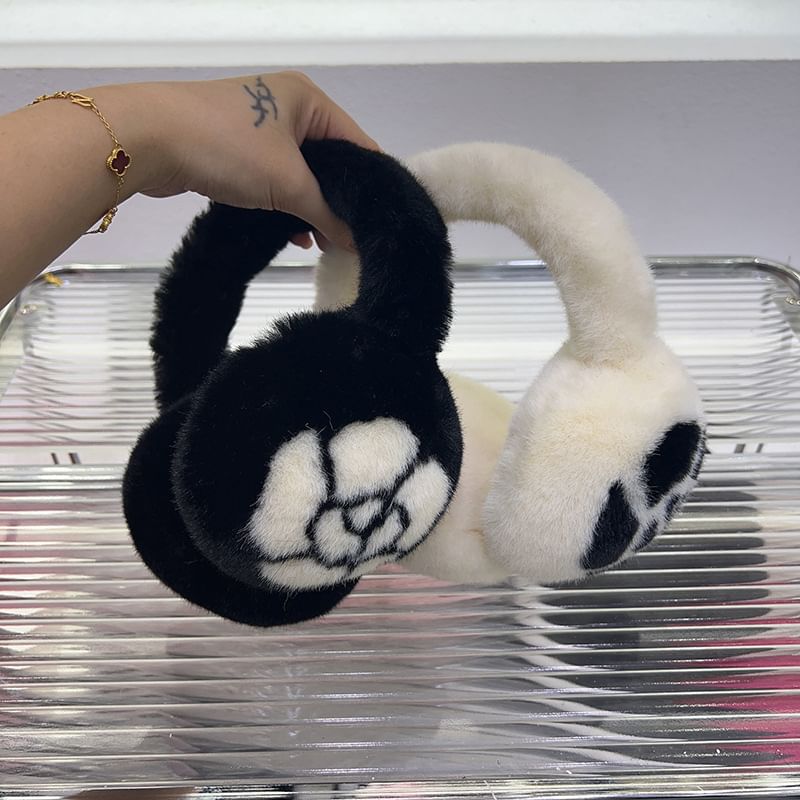 Floral Fluffy Bow Muffs Ear Scarf Print / Set