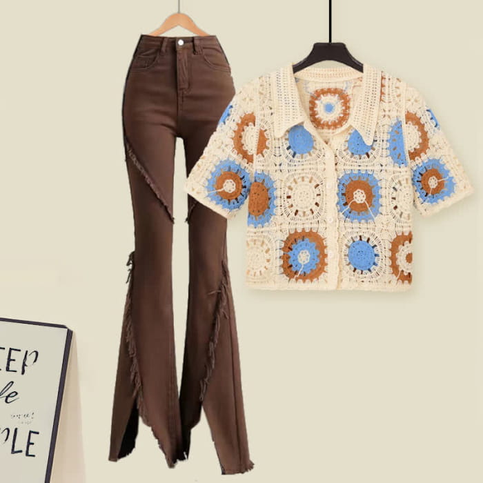 Effortlessly stylish and elegant, our Floral Hollow T-Shirt Fringed Split Denim Pants Set will elevate your wardrobe. The intricate floral hollow design adds a touch of grace, while the fringed split denim pants exude a chic and modern flair. Perfect for any occasion, this set offers both comfort and sophistication.