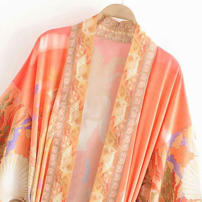Floral Peacock Mermaid Print Robe Long Cardigan Outerwear