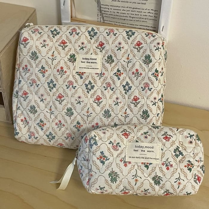 Floral Print Fabric Makeup Bag / Clutch / Pouch