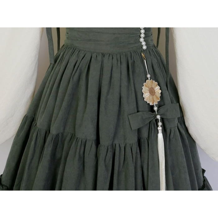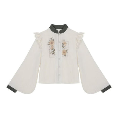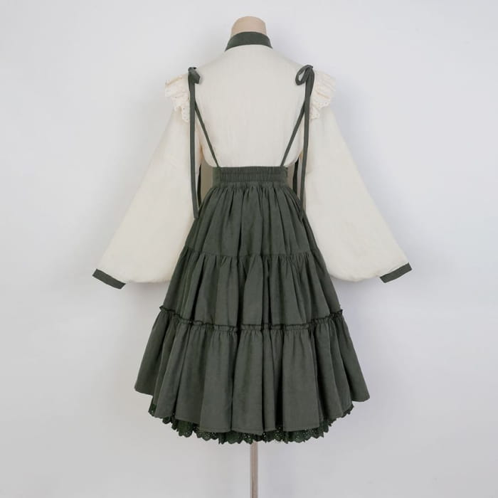 Flower Embroidered Lace Trim Lolita Blouse / Midi Jumper Dress / Set