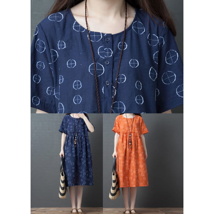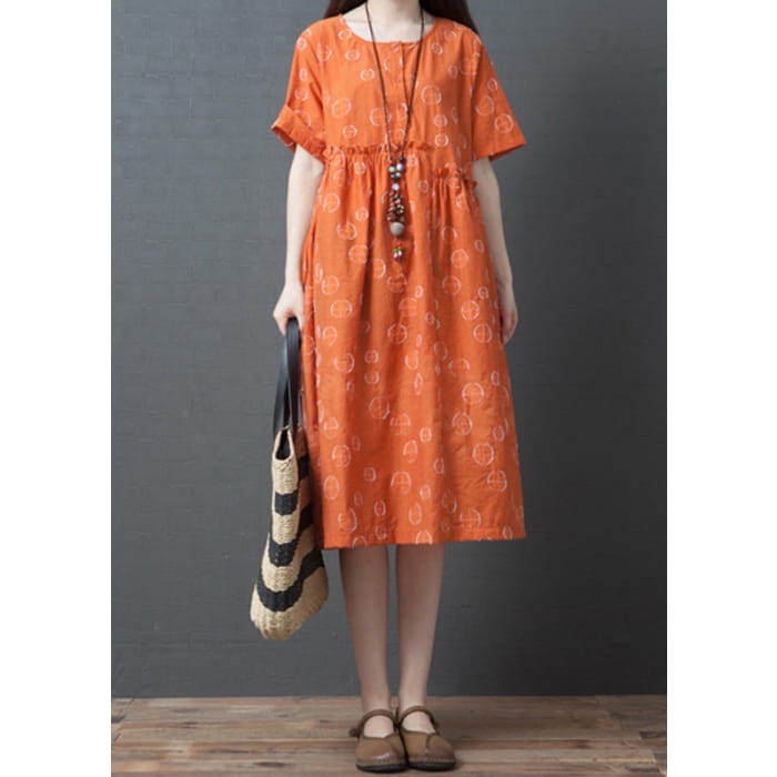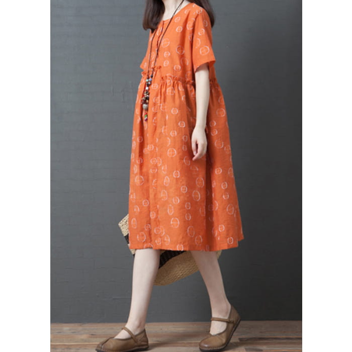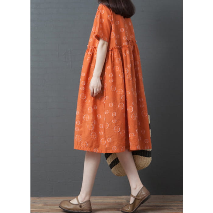 French Orange Dot Print Maxi Dress Short Sleeve VB1028
